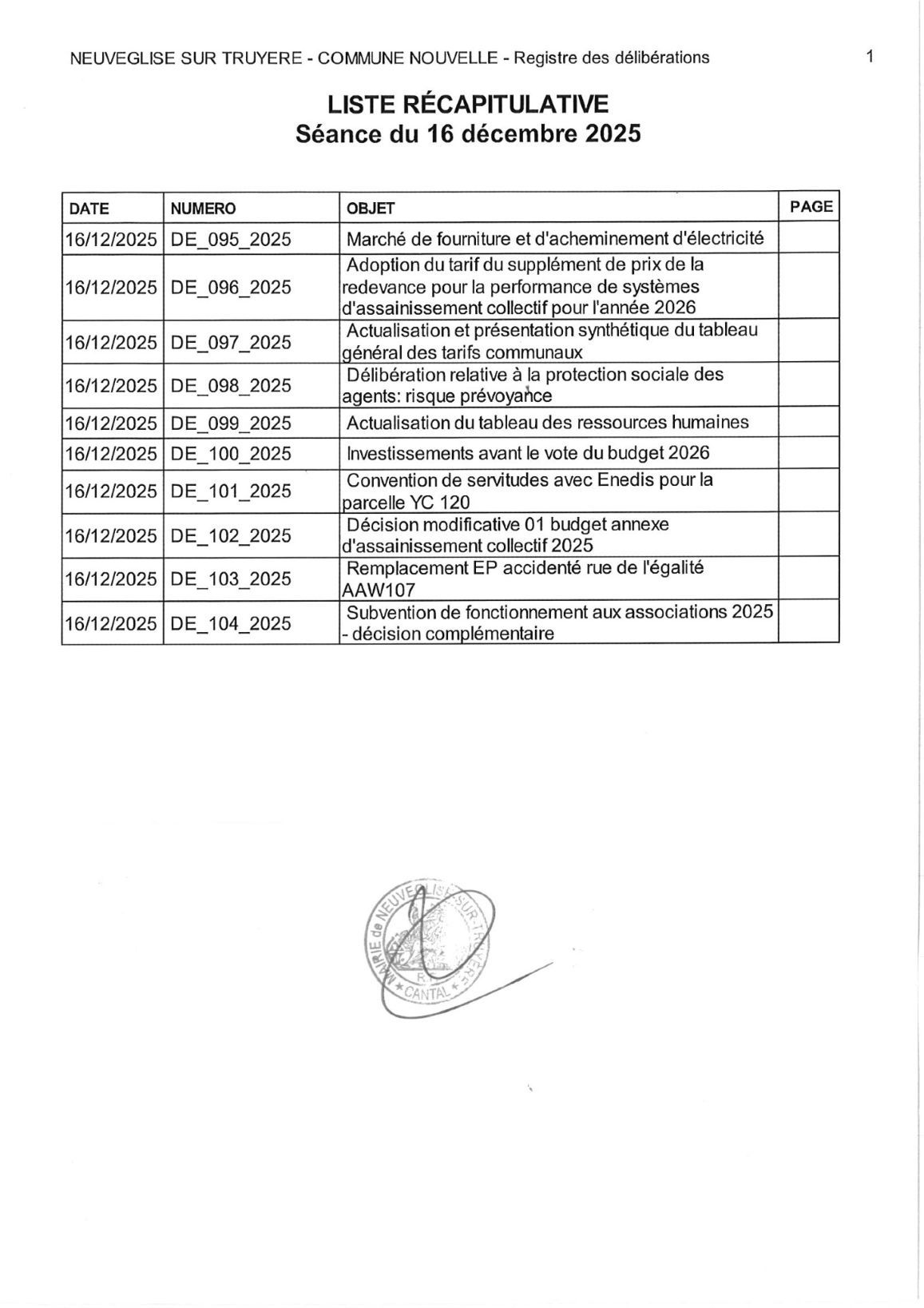Réunion du 30 septembre 2025